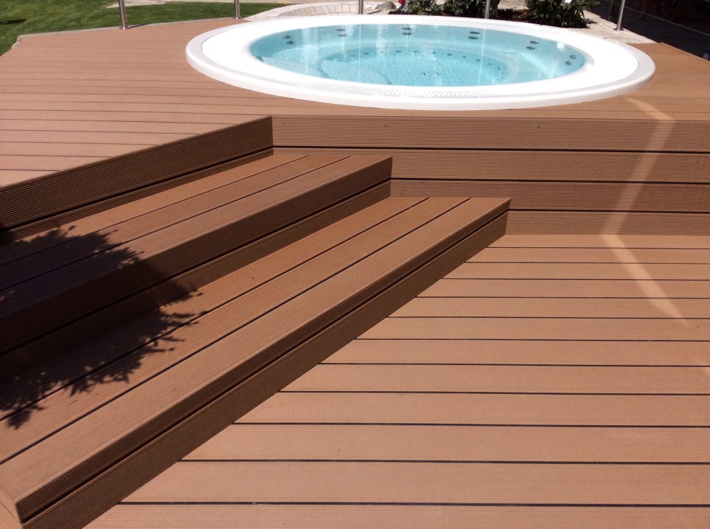 Terrassenböden aus WPC, ein Verbundwerkstoff aus Holz und Kunststoff eignet sich ebenso ideal, da es sehr pflegeleicht, wetterfest, splitterfrei und langlebig ist.